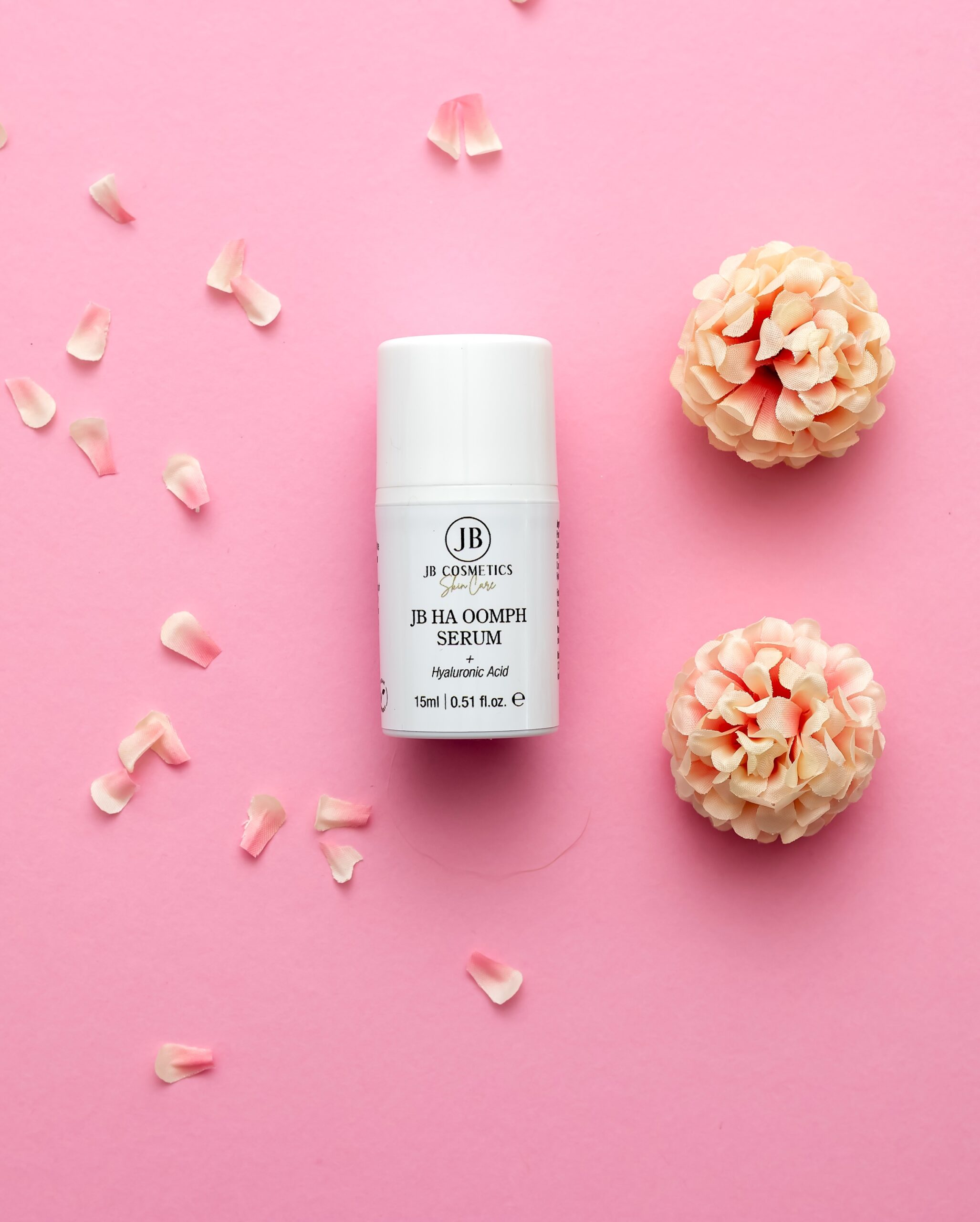 Our JB HA Oomph Hyaluronic Serum helps hydrate and plump the skin.